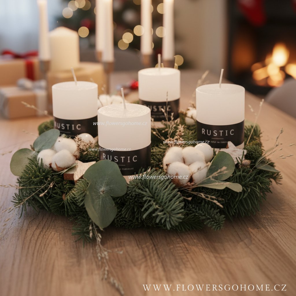 Pozn.: výslednou podobu adventního věnce mohou ovlivnit aktuálně dostupné typy přízdob, vždy se ale snažíme co možná nejvíce přiblížit původnímu stavu na produktové fotografii.