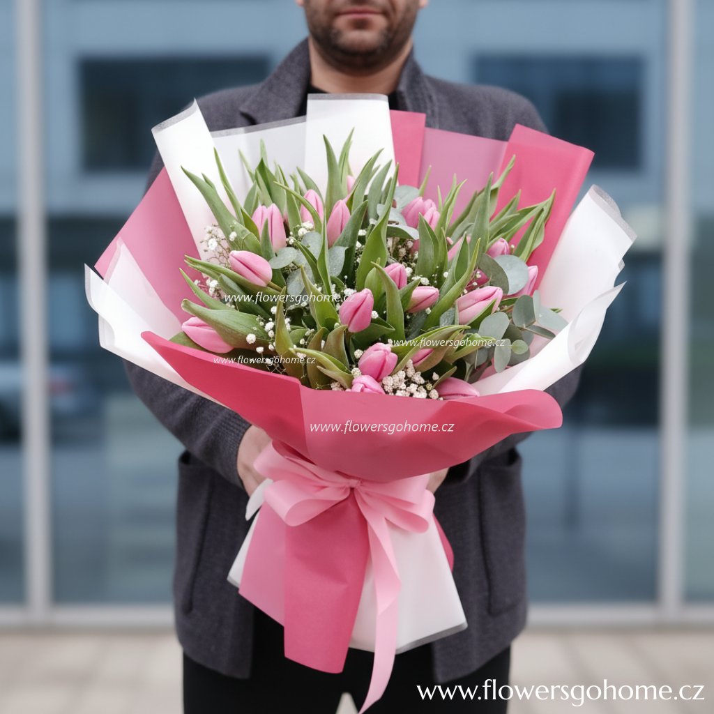 ✅ Kompletní dárek – Kytici růžových tulipánů dostanete v dárkovém papíře se stuhou. Nemusíte nic řešit, je připravena k okamžitému předání. ✅ Čerstvost, která je slyšet – Používáme jen tulipány nejvyšší kvality, které jsou tak čerstvé, že při doteku jemně "vržou". To ženy poznají a ocení. ✅ Expresní doručení (nejen) po Smíchově – Sídlíme na Praze 5. Pokud pracujete nebo bydlíte v okolí (Anděl, Smíchov, Jinonice...), jsme u vás bleskově. Samozřejmě doručujeme po celé Praze.