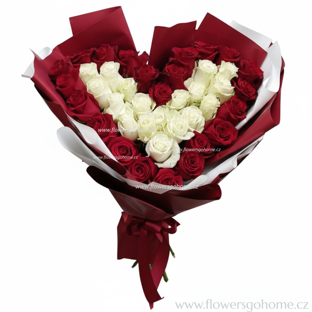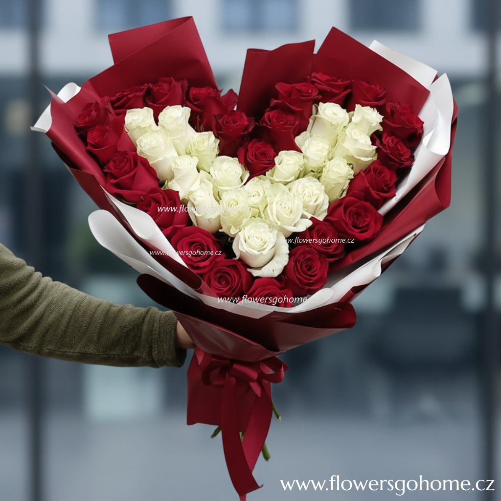 Díky délce stonků 70 cm působí kytice bohatě a elegantně. Precizní aranžmá ve tvaru srdce podtrhuje jedinečnost tohoto daru a zanechá nezapomenutelný dojem.