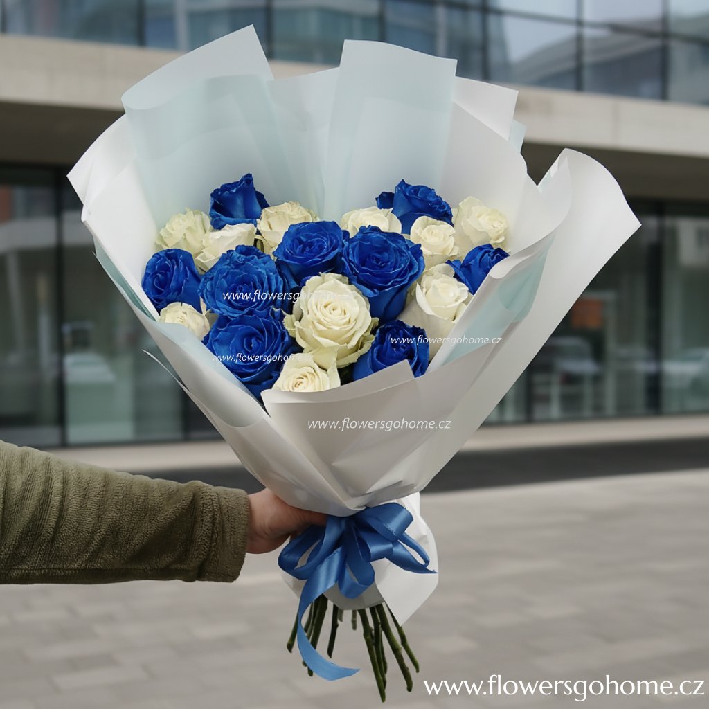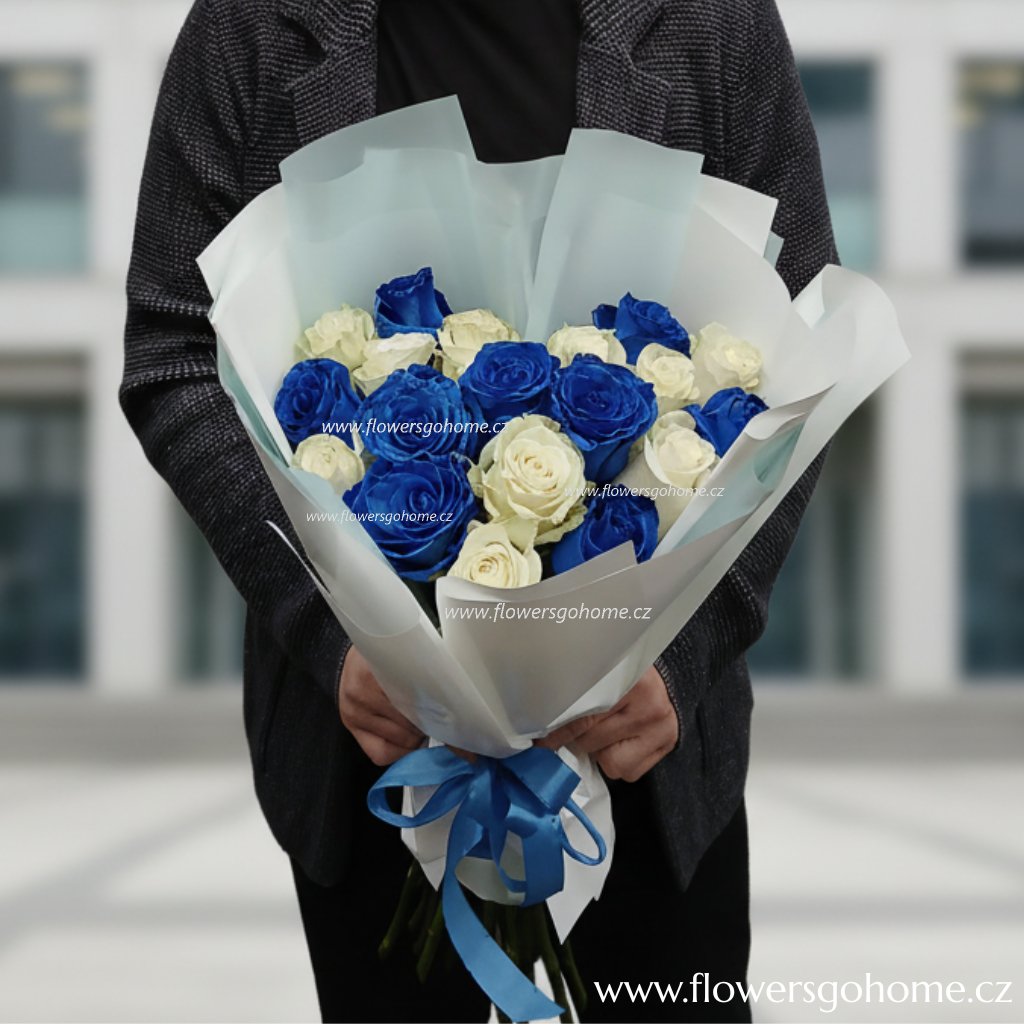 Hledáte dokonalý dárek k Valentýnu, MDŽ nebo pro jinou výjimečnou příležitost? Tato luxusní kytice růží ve tvaru srdce je tím pravým vyjádřením lásky a něhy. Kytice je tvořena 19 pečlivě vybranými ekvádorskými růžemi v nádherné kombinaci bílé a modré, které symbolizují vášeň, romantiku i radost.