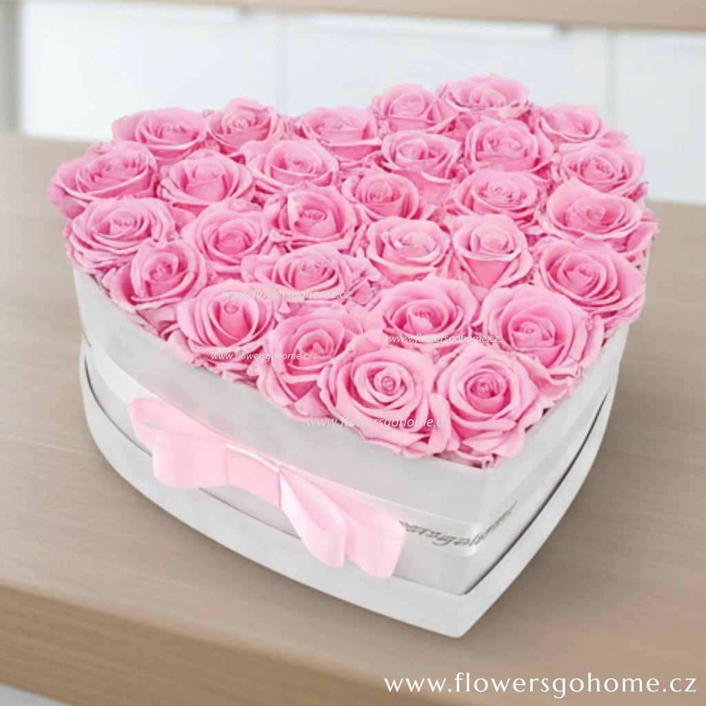 Věčná růže v dárkové krabičce ve tvaru srdce. Darujte pozornost, která působí stejně jemně jako živé řezané květiny, ale vydrží minimálně 2 roky!